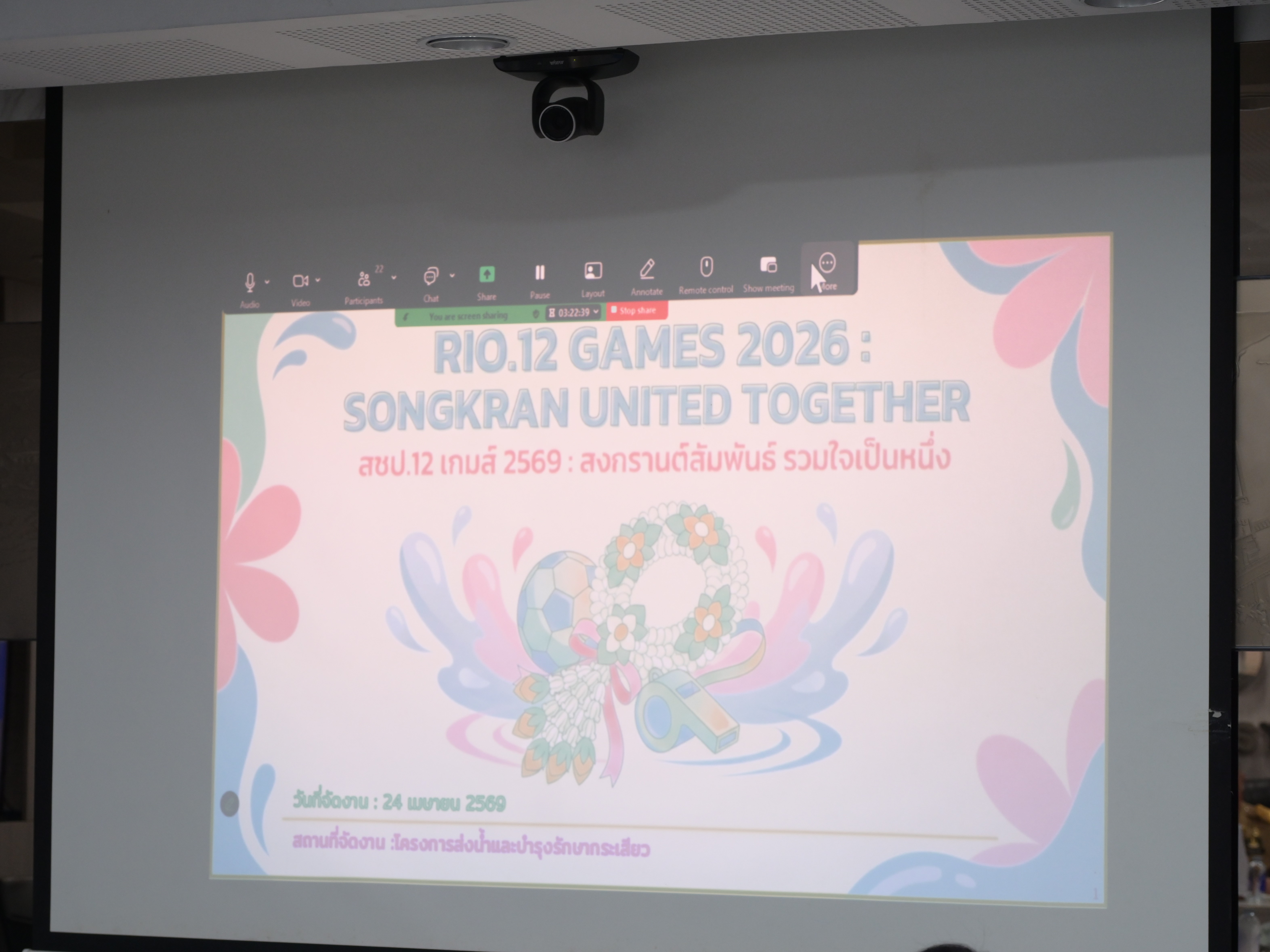 วันจันทร์ที่ 2 มีนาคม 2569 เวลา 13.30 น. นายสงกรานต์ ชลอศรีทอง ผู้อำนวยการสำนักงานชลประทานที่ 12 ประชุมการจัดกิจกรรม ”สชป.12 เกมส์ 2569 : สงกรานต์สัมพันธ์ รวมใจเป็นหนึ่ง” ”RIO.12 GAMES 2026 : SONGKRAN UNITED TOGETHER” เพื่อส่งเสริมสุขภาพ สร้างความสามัคคี และพัฒนาคุณภาพชีวิตของบุคลากรในสังกัดสำนักงานชลประทานที่ 12 โดยมี นายศุภเกียรติ เมฆสินธุ์ รองผู้อำนวยการสำนักงานชลประทานที่ 12 พร้อมด้วย นายวิชัย ผันประเสริฐ ผู้อำนวยการส่วนบริหารจัดการน้ำและบำรุงรักษา นายเอกสิทธิ์ ตันติมาสต์ ผู้อำนวยการ ส่วนวิศวกรรม นางสาวปิยนันท์ อนุศาสนนันท์ ผู้อำนวยการส่วนบริหารทั่วไป นายเถลิงกิตติ์ สุวรรณชาติ ผู้อำนวยการโครงการส่งน้ำและบำรุงรักษาเจ้าพระยา นายกมลวุฒิ พีรนันทปัญญา ผู้อำนวยการโครงการส่งน้ำและบำรุงรักษาทับเสลา หัวหน้าฝ่าย และเจ้าหน้าที่ที่เกี่ยวข้อง เข้าร่วมประชุมเพื่อชี้แจงรายละเอียดและวางแผนการดำเนินการจัดกิจกรรมดังกล่าว ณ ศูนย์ปฏิบัติการน้ำอัจฉริยะ (SWOC 12) สำนักงานชลประทานที่ 12 และโครงการในสังกัด เข้าร่วมประชุมผ่านระบบออนไลน์ Zoom Meeting