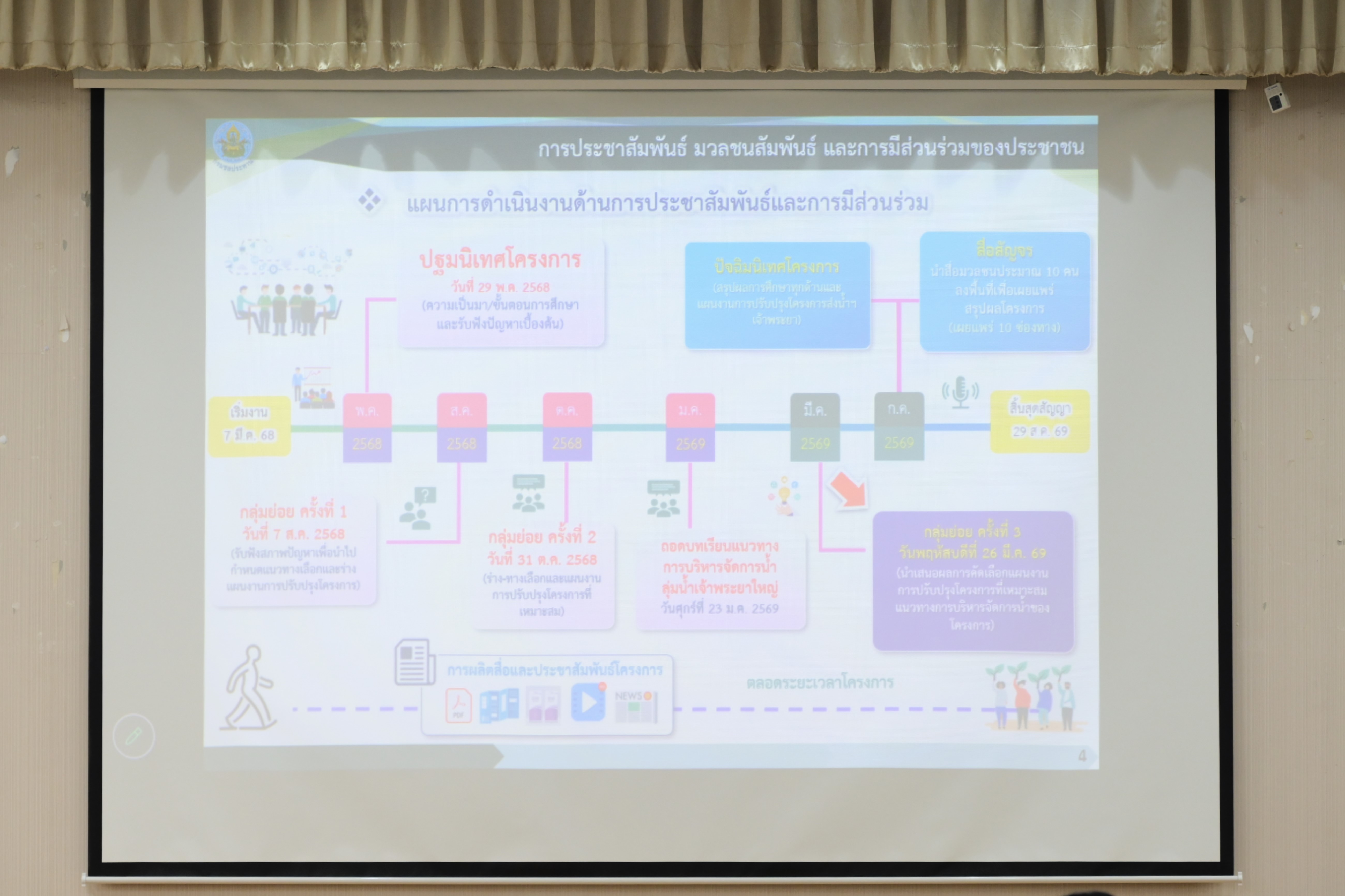 วันพฤหัสบดีที่ 26 มีนาคม 2569 เวลา 09.30 น. นายสงกรานต์ ชลอศรีทอง ผู้อำนวยการสำนักงานชลประทานที่ 12 มอบหมายให้ นายวิชัย ผันประเสริฐ ผู้อำนวยการส่วนบริหารจัดการน้ำและบำรุงรักษา พร้อมด้วย นายณัฐพงศ์ พิศบุญ ผู้อำนวยการส่วนแผนงาน นายเอกสิทธิ์ ตันติมาสต์ ผู้อำนวยการส่วนวิศวกรรม นายเถลิงกิตติ์ สุวรรณชาติ ผู้อำนวยการโครงการส่งน้ำและบำรุงรักษาเจ้าพระยา นายชลศักดิ์ สุขี ผู้อำนวยการโครงการส่งน้ำและบำรุงรักษาดอนเจดีย์ หัวหน้าฝ่ายและเจ้าหน้าที่ที่เกี่ยวข้อง เข้าร่วมประชุมกลุ่มย่อย ครั้งที่ 3 โครงการศึกษาความเหมาะสมปรับปรุง โครงการส่งน้ำและบำรุงรักษาเจ้าพระยา จังหวัดชัยนาท เพื่อนำเสนอทางเลือกในการปรับปรุงโครงการและผลการคัดเลือกลักษณะและแผนงานการปรับปรุงโครงการที่เหมาะสม พร้อมทั้งรับฟังความคิดเห็นเพื่อนำไปประกอบการพิจารณาแนวทางการปรับปรุงโครงการให้มีความสมบูรณ์มากยิ่งขึ้นในลำดับต่อไป ณ ห้องประชุมพระครูวิมลคุณากร ชั้น 2 อาคารศูนย์เรียนรู้และพัฒนาแหล่งท่องเที่ยว สำนักงานชลประทานที่ 12 เขื่อนเจ้าพระยา จังหวัดชัยนาท